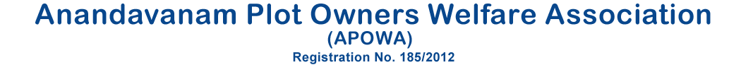 About APOWAAnandavanam is a layout formed near the quaint old town of Bheemunipatnam more than a decade ago. It comprises around 200 plots of land with mango and other fruit bearing plants. The plots are in an idyllic location with a panoramic scenery on all sides and a club house that can be used by plot owners on taking permission from the developer. It was felt that the plot owners would benefit from forming an association to look after the interests of the plot owners. Anandavanam Plot Owners Welfare Association (APOWA) is a registered society with registration number 185 of 2012. The association is funded by members who pay an annual maintenance fee for general housekeeping of the layout, which involves keeping the roads motorable, removing of wild growth, clearing the drains of fallen leaves and watering of the plants. The staff that live within the layout also drive away grazing cattle and provide basic security. The association, with the support of all members, hopes to expand its scope over time and take up development work such as black-topping of roads and providing underground electrical cabling. Executive CommitteeEXECUTIVE COMMITTEE MEMBERS FOR YEAR 2025-26